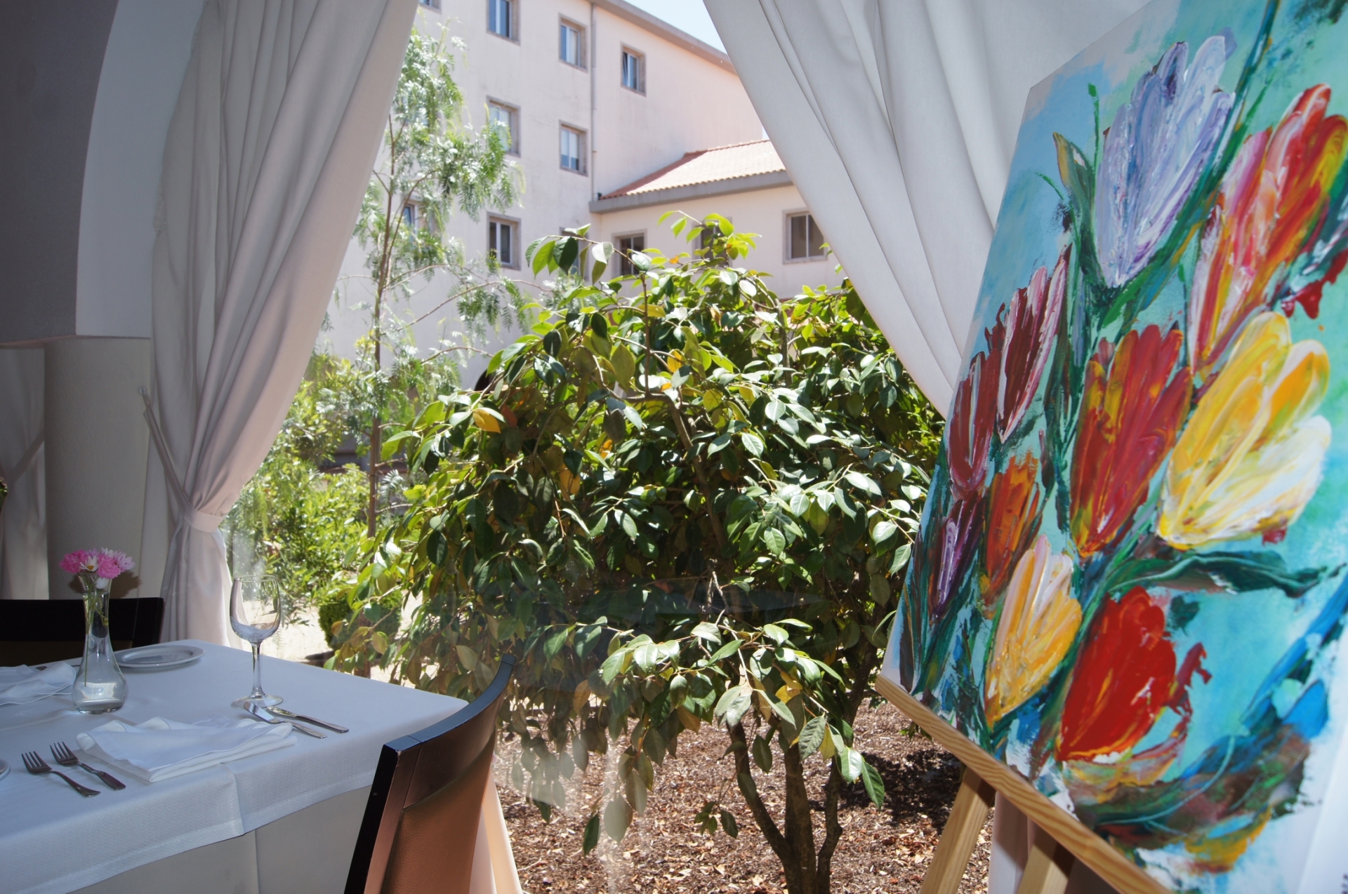 O Claustro Monfortino, restaurante de aplicação da Escola de Hotelaria de Fátima, junta todos os meses o prazer da pintura e da cozinha com a iniciativa “Arte no Claustro”. Expondo os trabalhos de um artista para apreciar enquanto vai degustando as maravilhosas refeições criadas pelos nossos alunos. Alimentando o corpo e o espírito.
